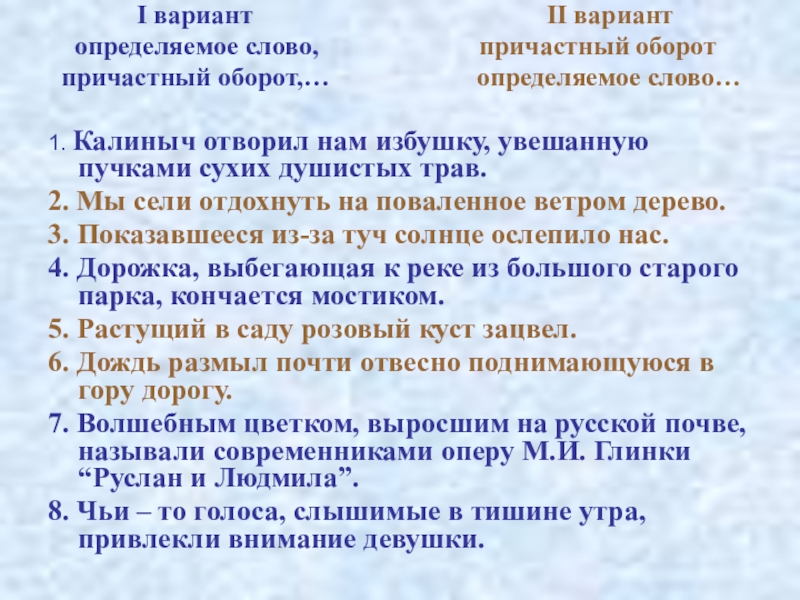 1. Калиныч отворил нам избушку, увешанную пучками сухих душистых трав.