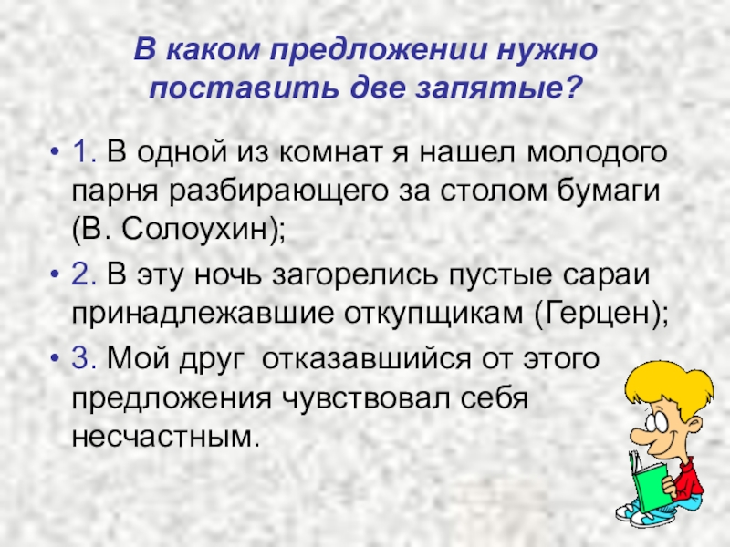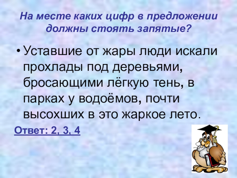 Слайд 19На месте каких цифр в предложении должны стоять запятые?