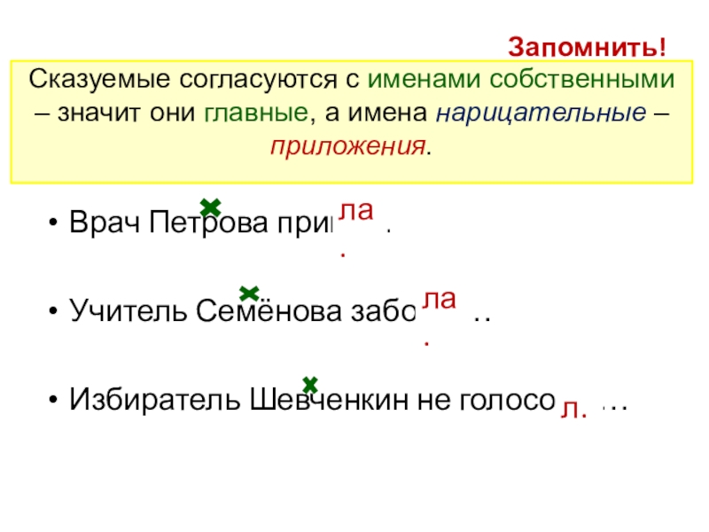 Сказуемые согласуются с именами собственными – значит они главные, а имена нарицательные – приложения.