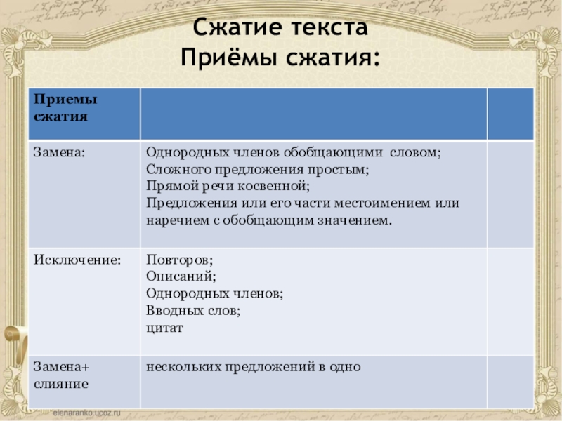 Слайд 17Сжатое изложение