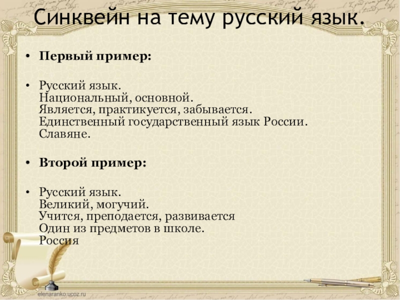Слайд 12Синквейн на тему русский язык.