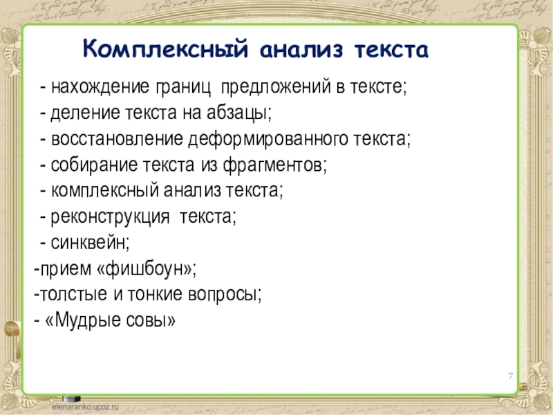 Слайд 10Комплексный анализ текста