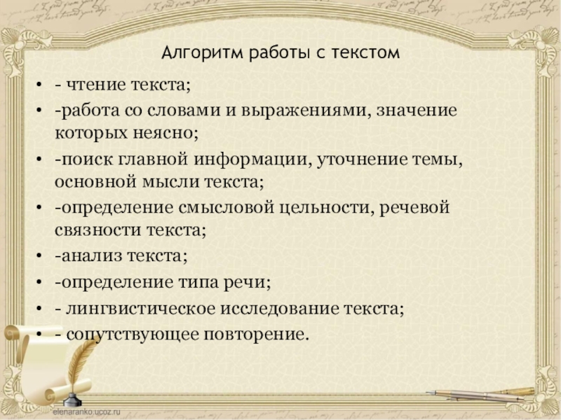 Слайд 6Алгоритм работы с текстом
