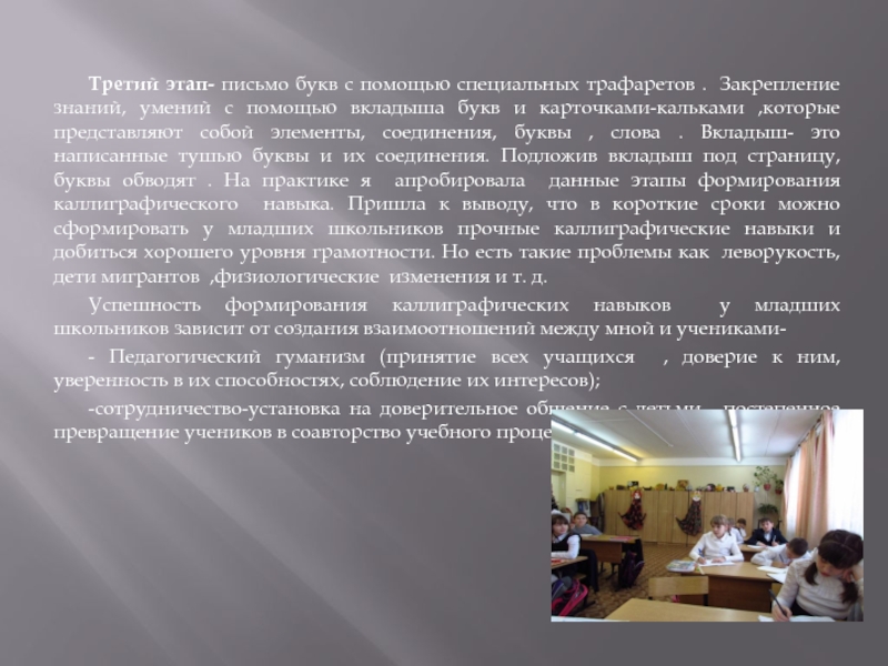 Успешность формирования каллиграфических навыков у младших школьников зависит от создания взаимоотношений между мной и учениками-