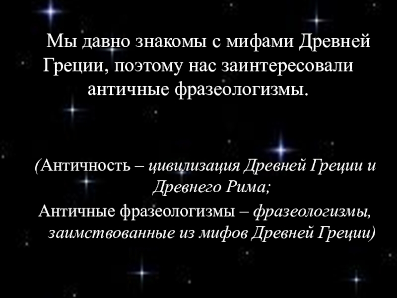 Слайд 7 Мы давно знакомы с мифами Древней Греции, поэтому нас заинтересовали античные