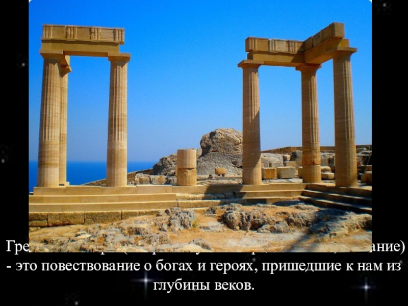 Слайд 15Греческие мифы (от греч. mythos - предсказание, сказание) - это повествование