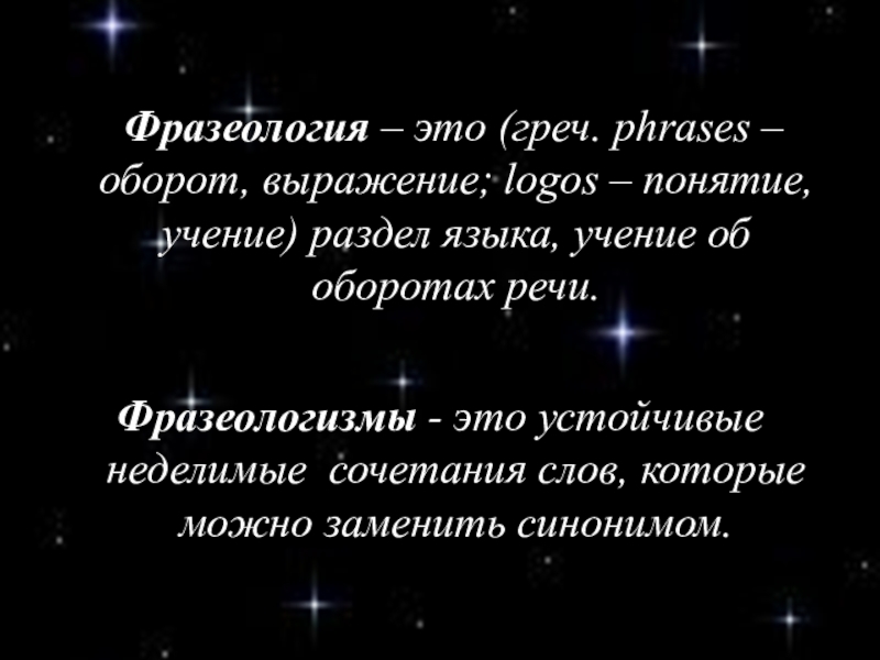 Фразеология – это (греч. phrases – оборот, выражение; logos