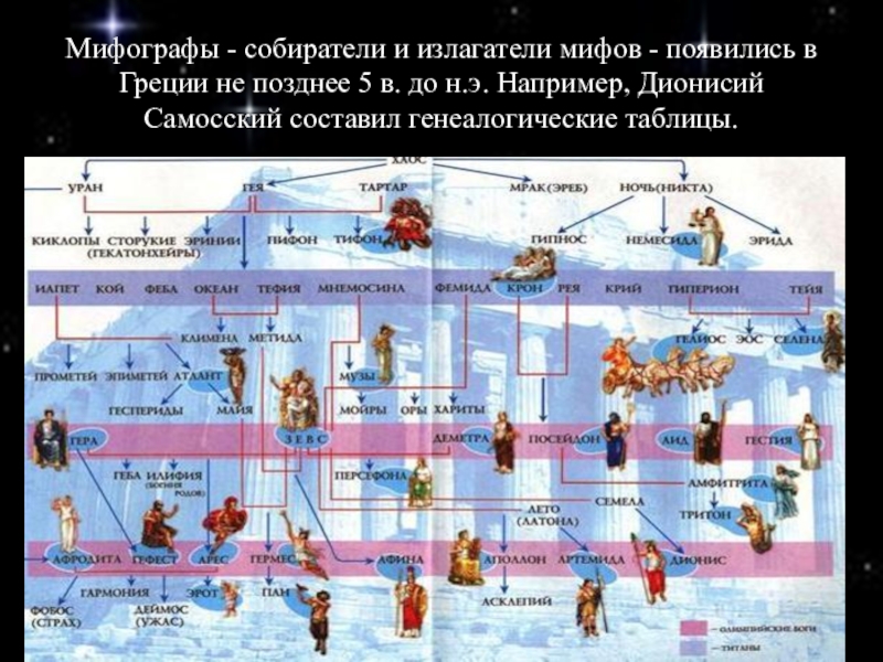 Слайд 19Мифографы - собиратели и излагатели мифов - появились в Греции не