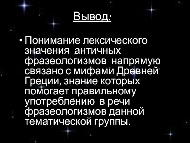 Понимание лексического значения античных фразеологизмов напрямую связано с мифами Древней Греции,