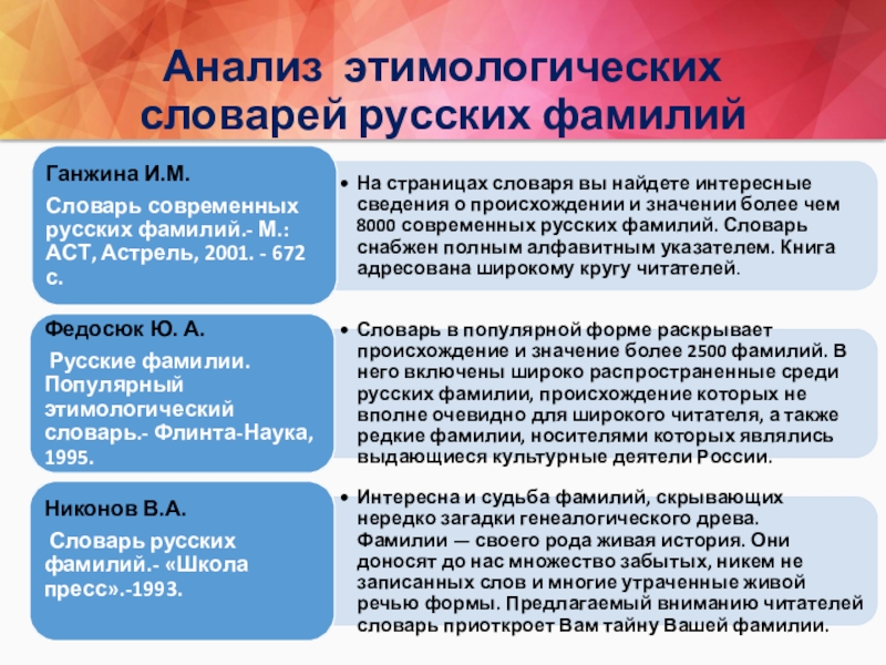 Есть группа фамилий, истоки которых можно узнать, только обратившись к этимологическому словарю .