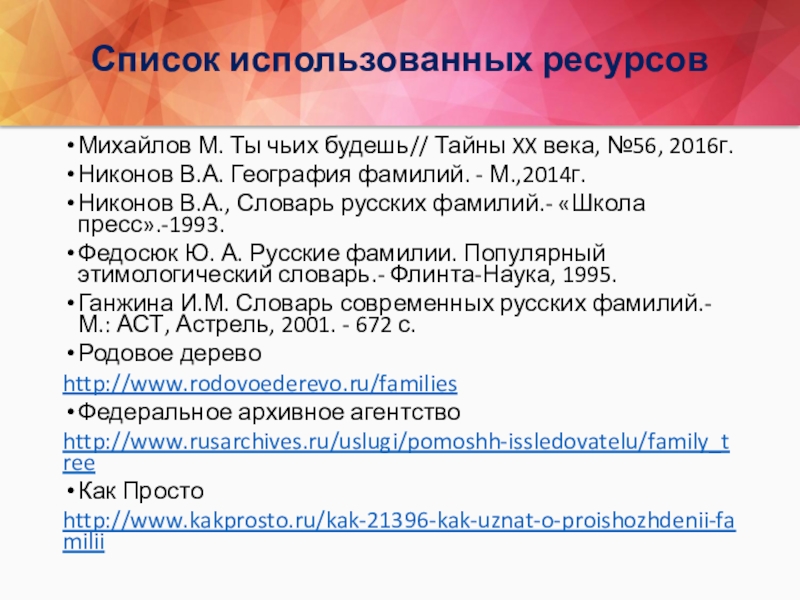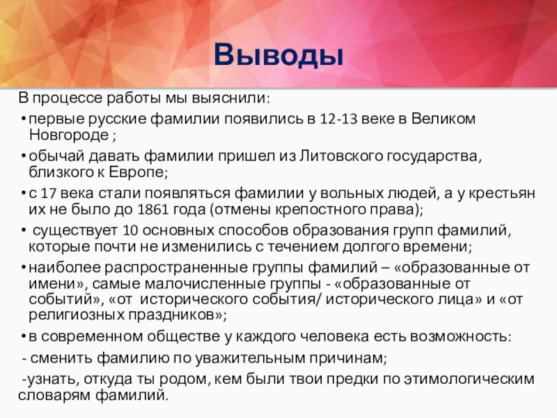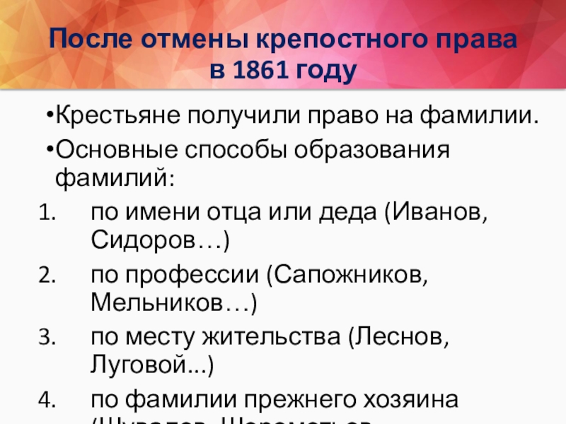 Основные 10 способов формирования фамилий сохранились до настоящего времени: