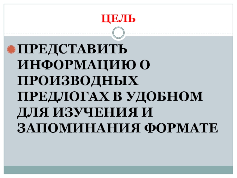 ЦЕЛЬПРЕДСТАВИТЬ ИНФОРМАЦИЮ О ПРОИЗВОДНЫХ ПРЕДЛОГАХ В УДОБНОМ ДЛЯ ИЗУЧЕНИЯ И ЗАПОМИНАНИЯ ФОРМАТЕ