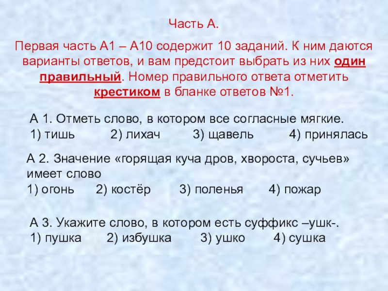 А 1. Отметь слово, в котором все согласные мягкие. 1) тишь 2) лихач 3) щавель 4) принялась