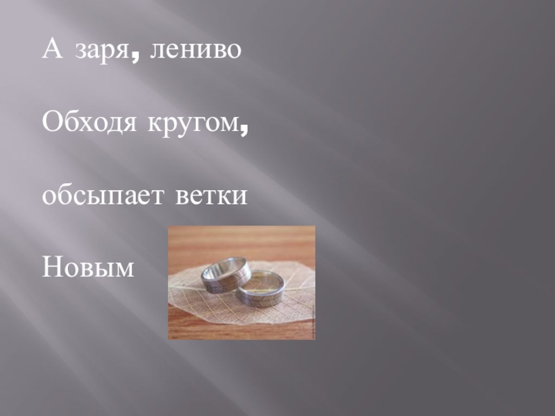 А заря, лениво Обходя кругом, обсыпает ветки Новым
