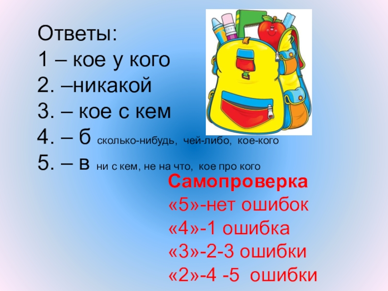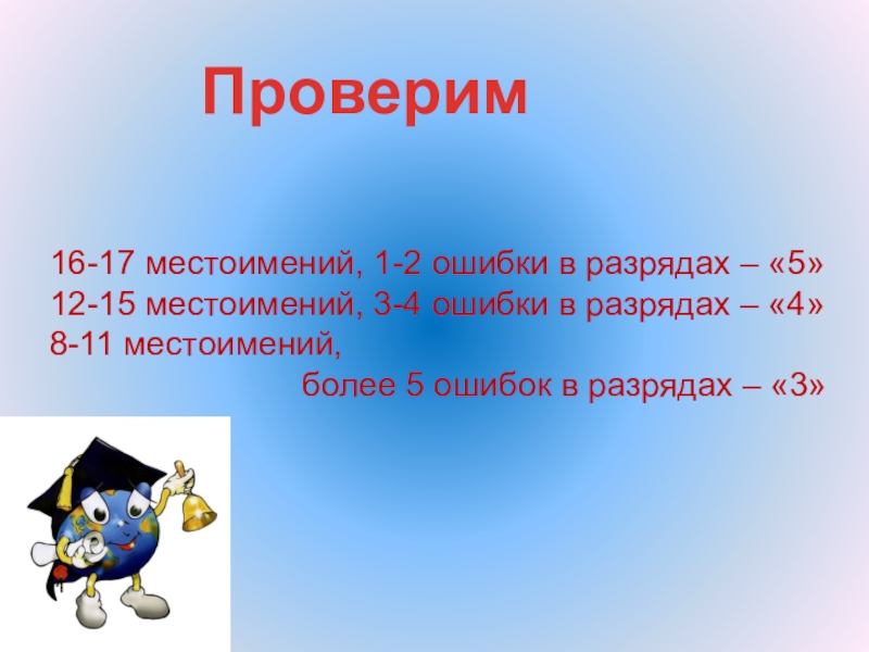 16-17 местоимений, 1-2 ошибки в разрядах – «5»