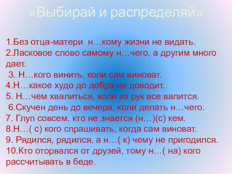10.Кто оторвался от друзей, тому н…( на) кого рассчитывать в беде.