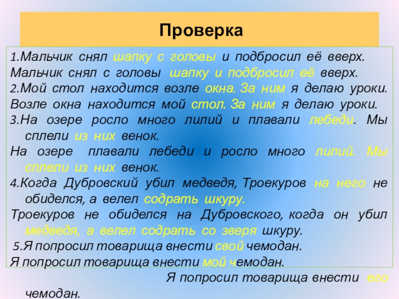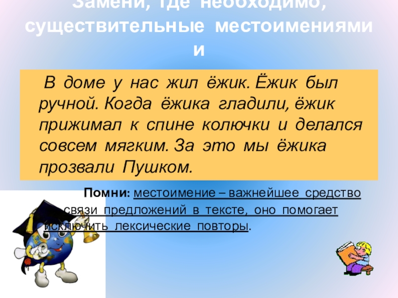 Слайд 23Замени, где необходимо, существительные местоимениями и