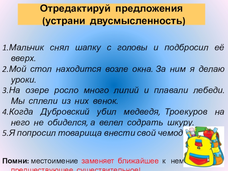 Помни: местоимение заменяет ближайшее к нему предшествующее существительное!