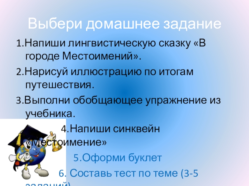 1.Напиши лингвистическую сказку «В городе Местоимений».