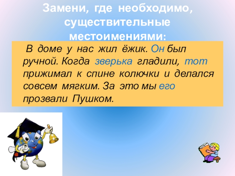Слайд 24Замени, где необходимо, существительные местоимениями: