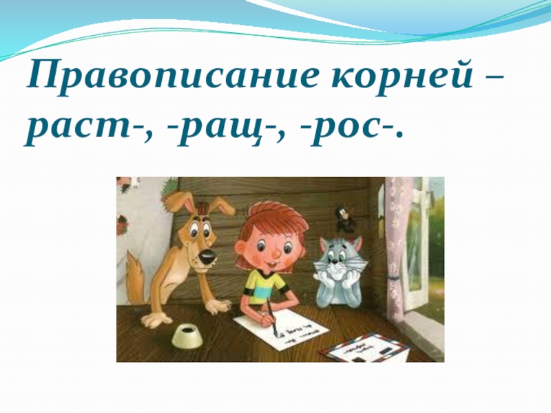 Презентация, доклад по русскому языку Путешествие в Простоквашино (правописание корней -раст-, -рос-)