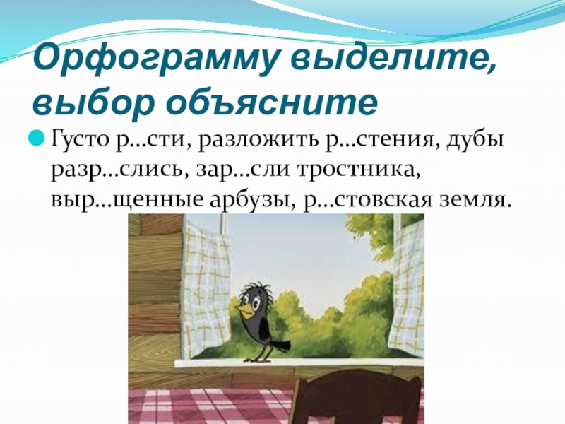 Густо р…сти, разложить р…стения, дубы разр…слись, зар…сли тростника,