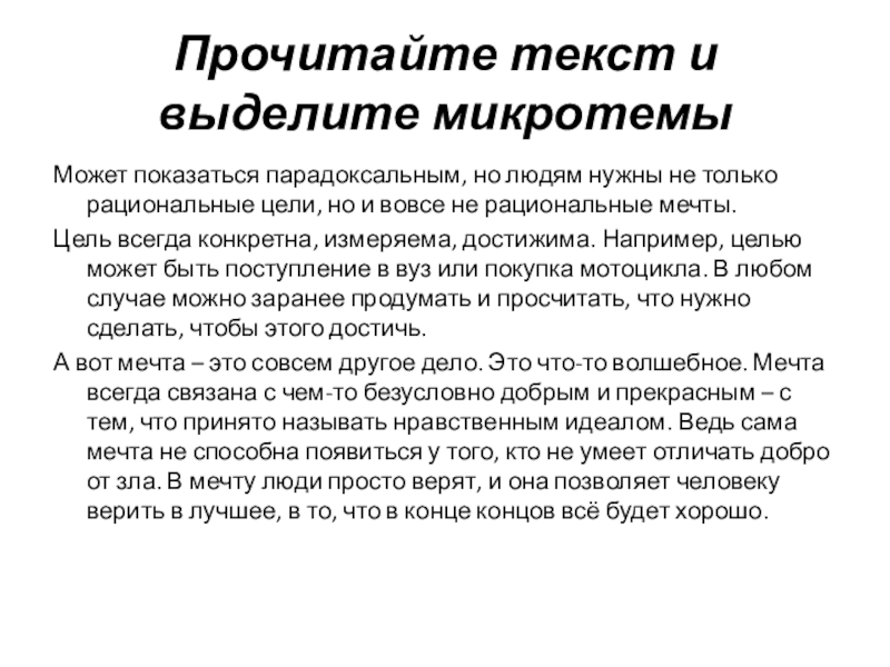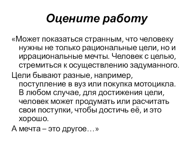 но и иррациональные мечты. Человек с целью, стремиться к осуществлению задуманного.