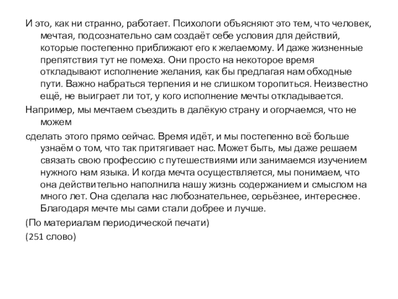 4 Человек, мечтая, подсознательно сам создаёт условия для того, чтобы