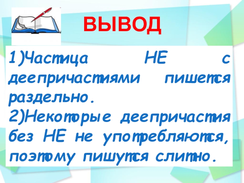 Слайд 1Раздельное написание НЕ с деепричастиями