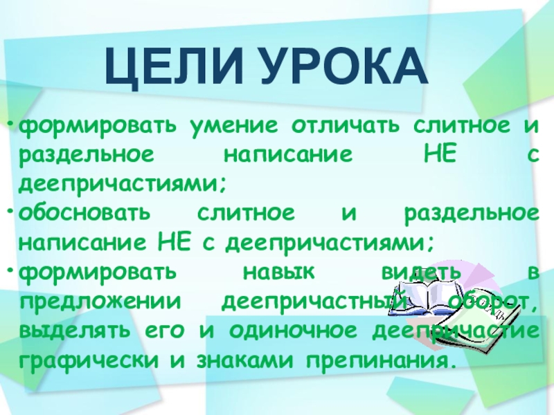 формировать умение отличать слитное и раздельное написание НЕ с деепричастиями;