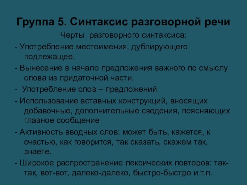 Группа 5. Синтаксис разговорной речи