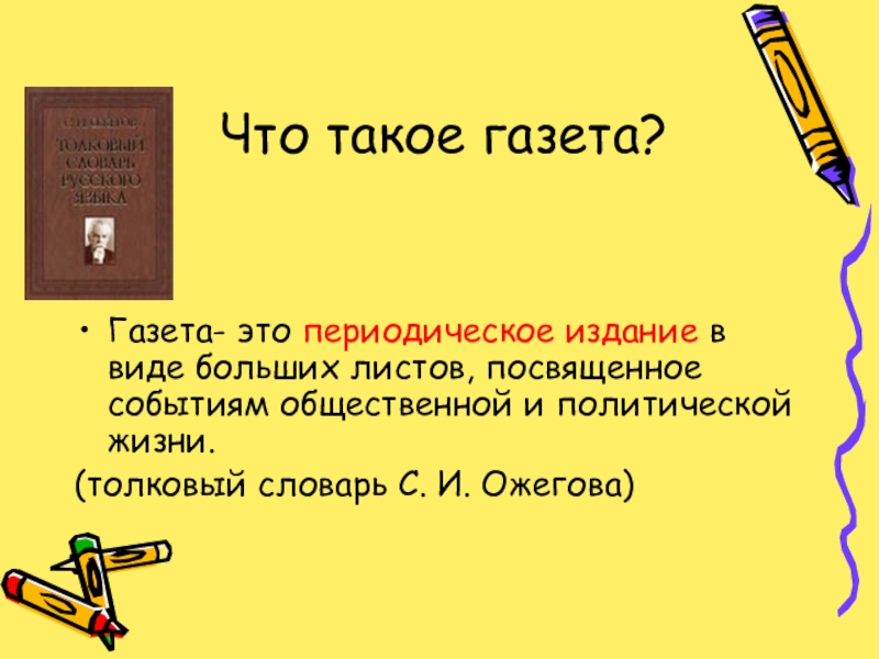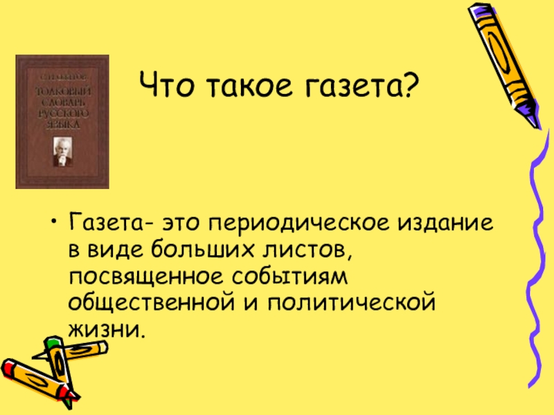 Что такое газета?Газета- это периодическое издание в виде больших листов, посвященное событиям общественной и