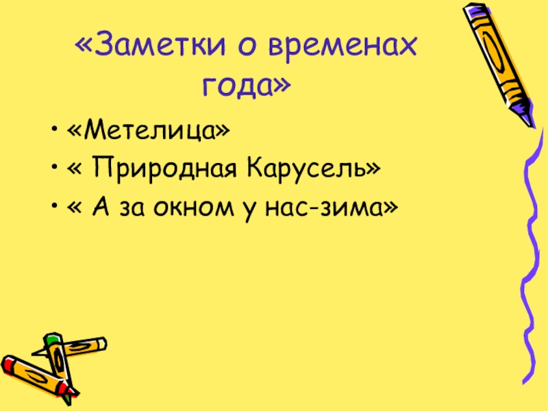 «Заметки о временах года»«Метелица»« Природная Карусель»« А за окном у нас-зима»