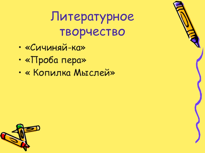 Литературное творчество«Сичиняй-ка»«Проба пера»« Копилка Мыслей»