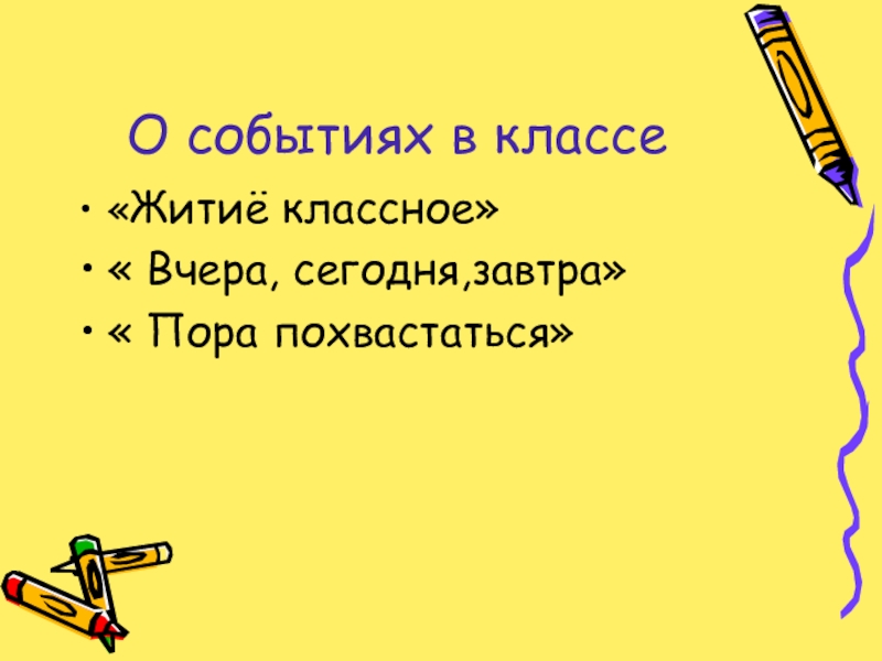 О событиях в классе«Житиё классное»« Вчера, сегодня,завтра»« Пора похвастаться»