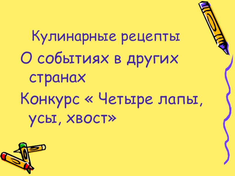 Кулинарные рецептыО событиях в других странахКонкурс « Четыре лапы, усы, хвост»