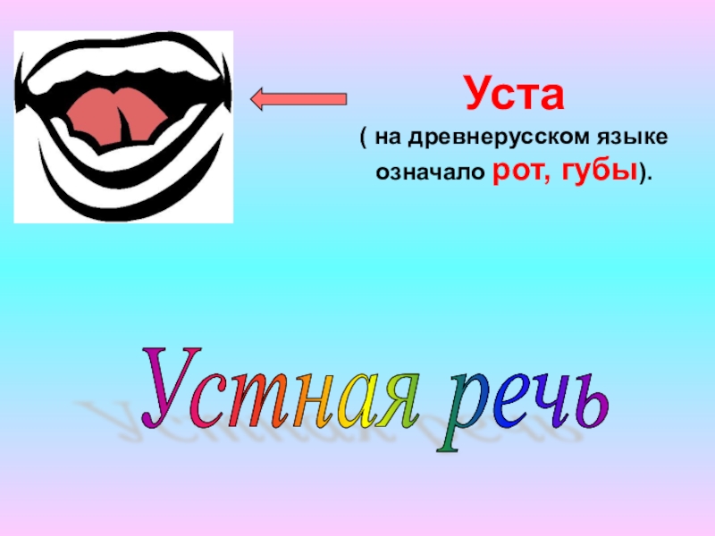 Уста ( на древнерусском языкеозначало рот, губы).Устная речь