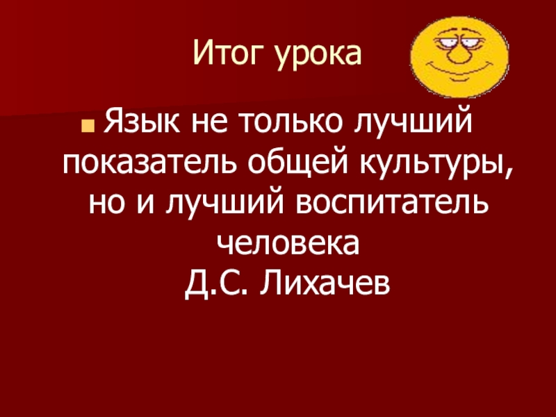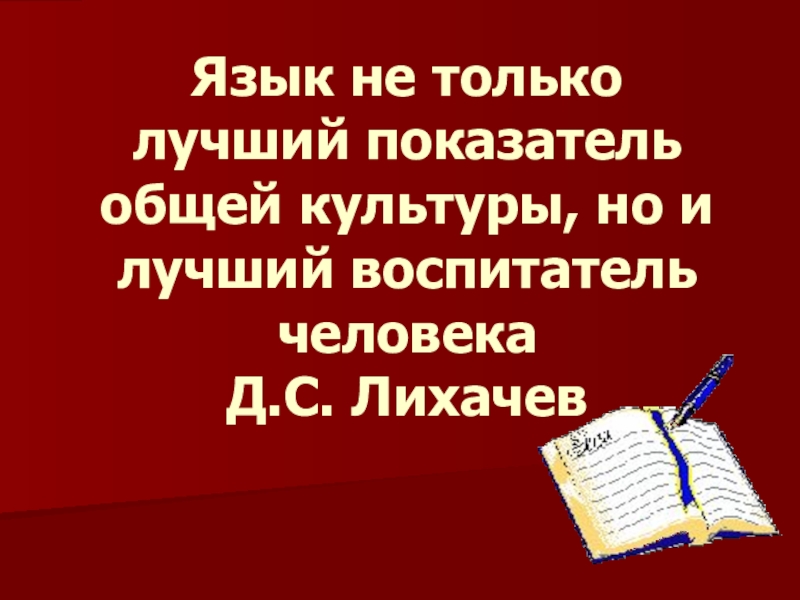Слайд 2Язык не только лучший показатель общей культуры, но и лучший воспитатель