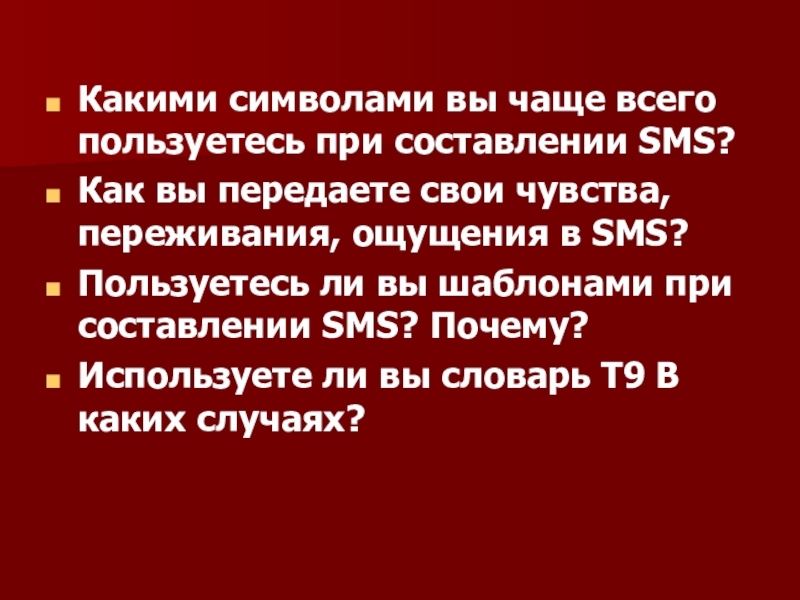 Какими символами вы чаще всего пользуетесь при составлении SMS?