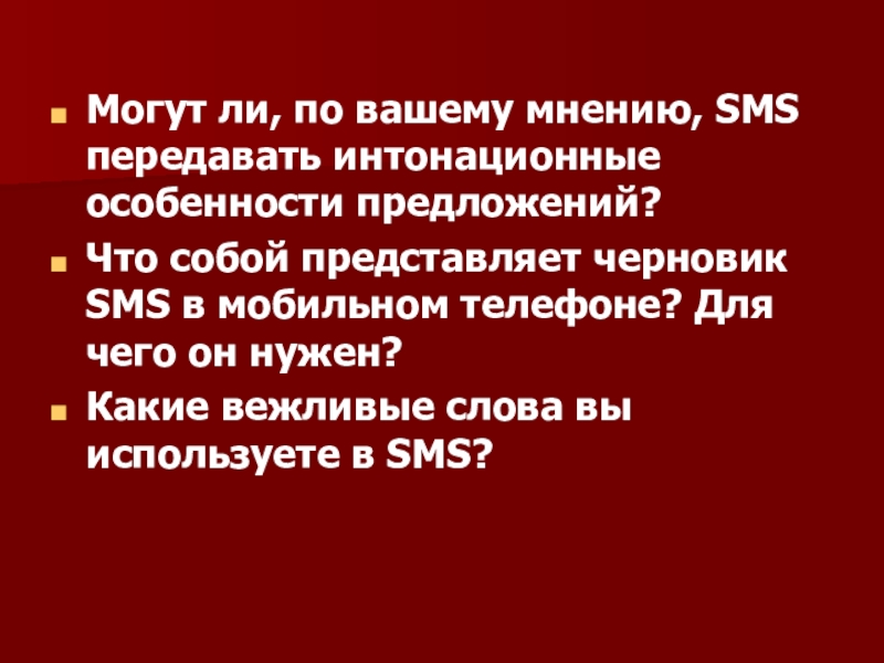 Могут ли, по вашему мнению, SMS передавать интонационные особенности предложений?