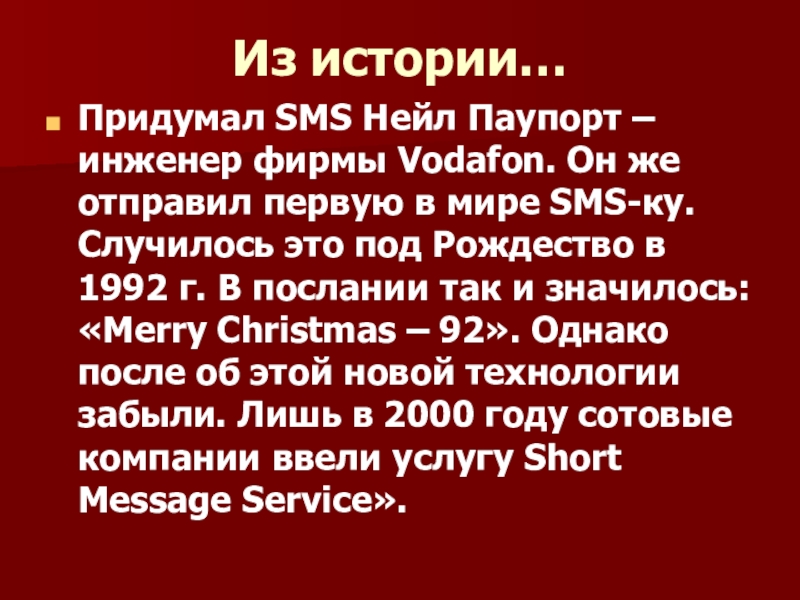 Придумал SMS Нейл Паупорт – инженер фирмы Vodafon. Он же