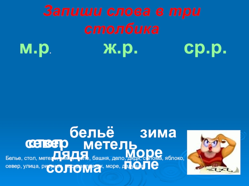 Списать и указать род
