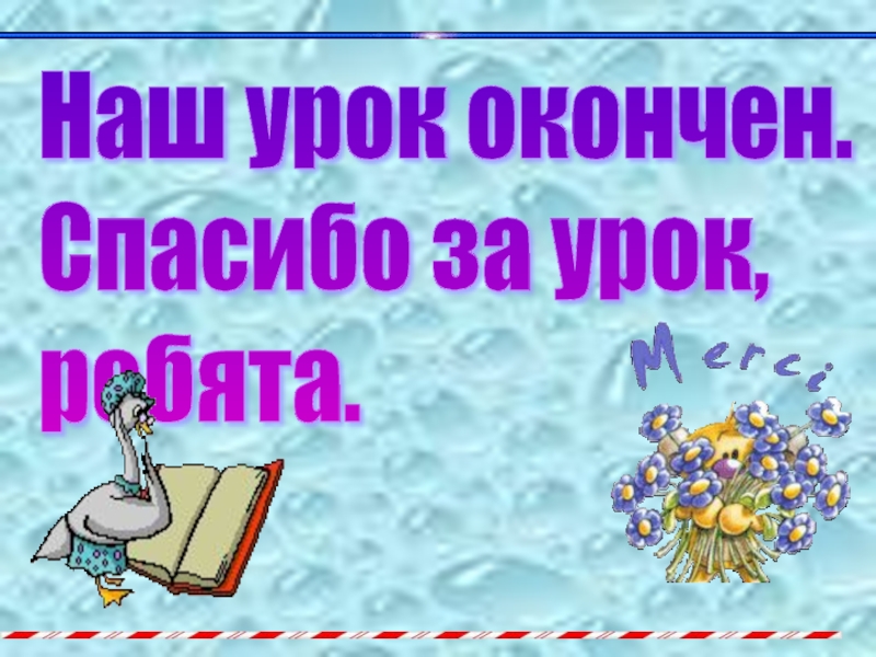 Наш урок окончен.  Спасибо за урок,  ребята.