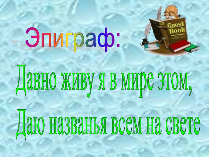 Эпиграф:Давно живу я в мире этом,  Даю названья всем на свете