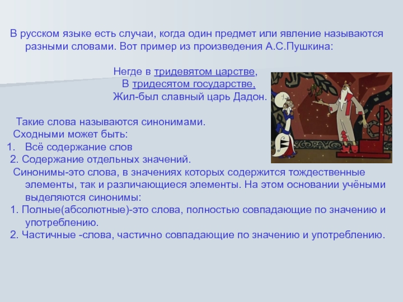 Роль синонимов в поэме А.С.