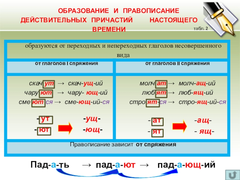 Пад-а-ть → пад-а-ют → пад-а-ющ-ий