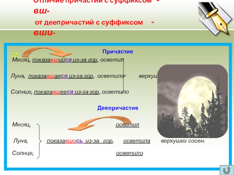 Показавшееся из-за гор солнце ослепило нас. Солнце, показавшееся из-за гор, ослепило нас.