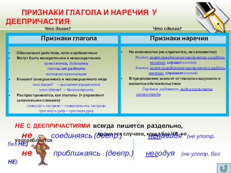 НЕ С ДЕЕПРИЧАСТИЯМИ всегда пишется раздельно,