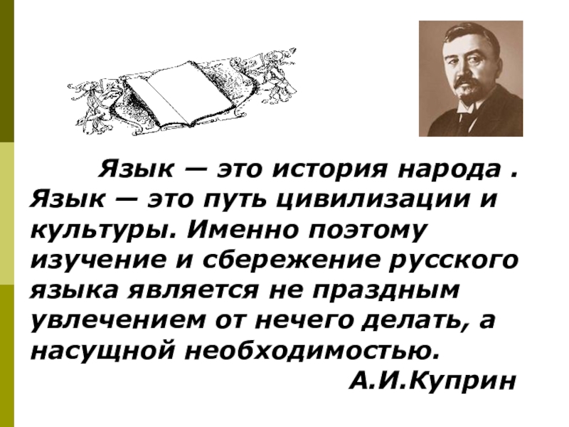 Язык — это история народа . Язык — это путь цивилизации и культуры. Именно поэтому изучение и сбережение русского языка является не праздным увлечением от нечего делать, а насущной необходимостью.