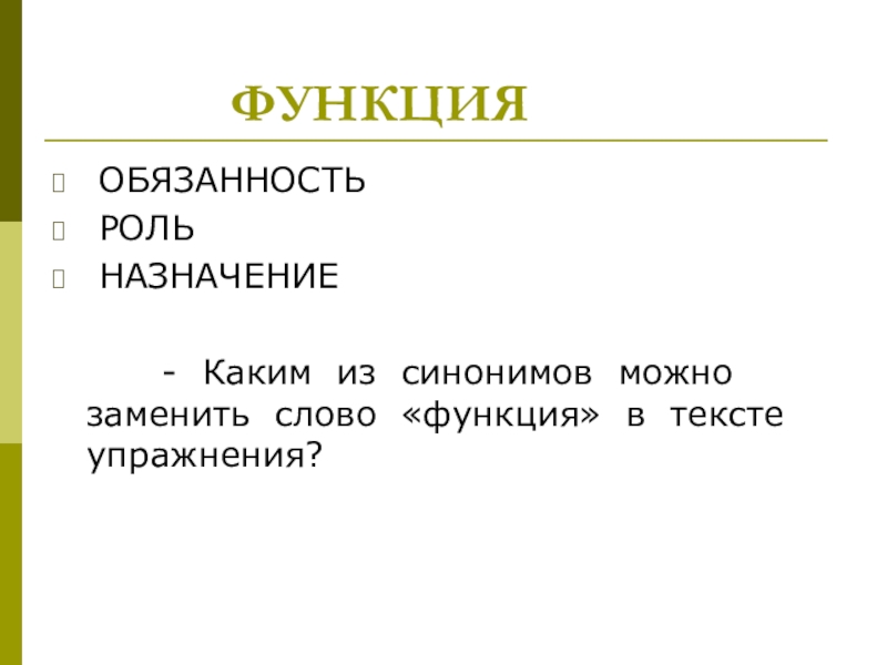 - Каким из синонимов можно заменить слово «функция» в тексте упражнения?